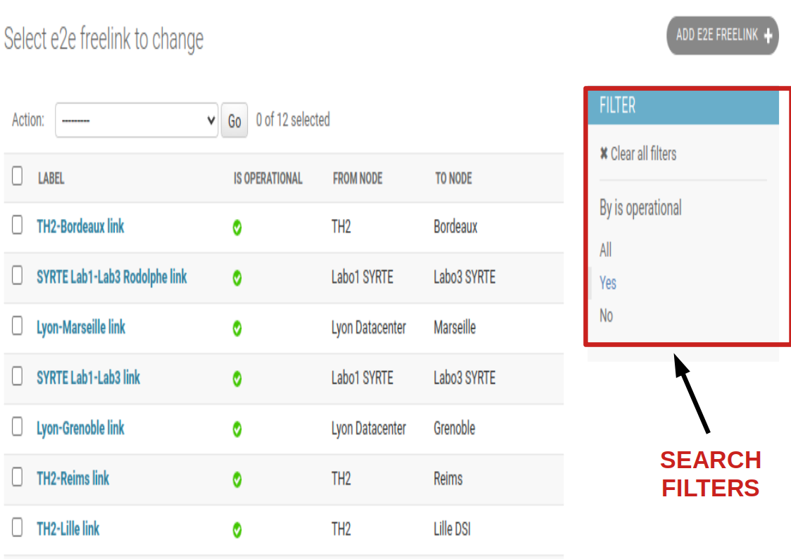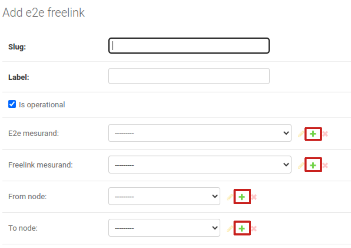 - Certains champs sont eux-mêmes des objets liés. Ici par exemple, on a deux objets mesurandes (champs E2E et Freelink) et deux objets noeuds (From node et To node). Pour chaque champ :